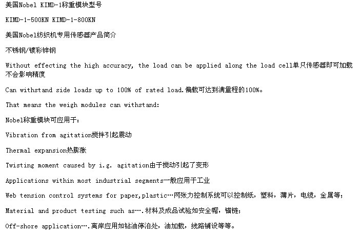 產(chǎn)品名稱:Vishay Nobel稱重模塊KIMD-1