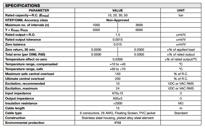 美國特迪亞tedea 121稱重傳感器系列所有量程如下:7hP廣州南創(chuàng)電子科技有限公司