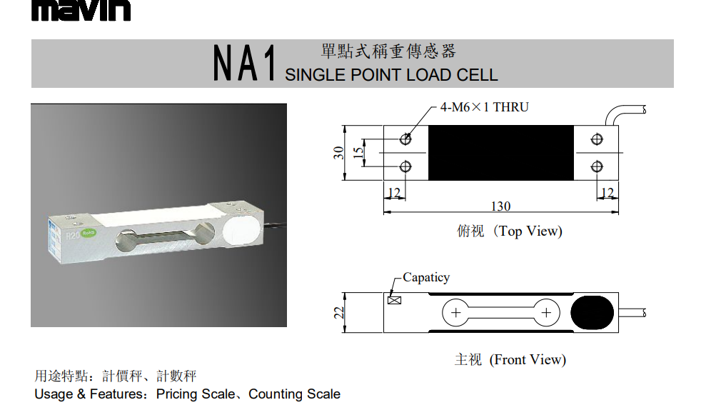 0NQ廣州南創(chuàng)電子科技有限公司臺灣MAVIN稱重傳感器NA1系列技術(shù)參數(shù)圖:0NQ廣州南創(chuàng)電子科技有限公司