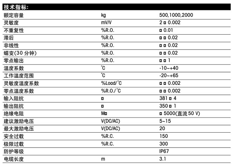 7mu廣州南創(chuàng)電子科技有限公司METTLER TOLEDO稱重傳感器SBC-2000kg技術(shù)參數(shù):7mu廣州南創(chuàng)電子科技有限公司