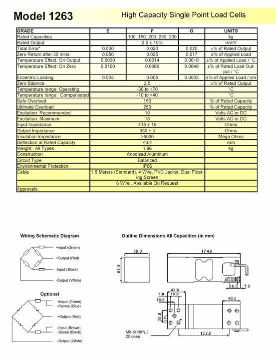 型號(hào)量程:Tedea 1263-50kg , Tedea 1263-100kg , Tedea 1263-150kg , Tedea 1263-200kg , Tedea 1263-250kg , Tedea 1263-300kg , Tedea 1263-500kg , Tedea 1263-635kg
